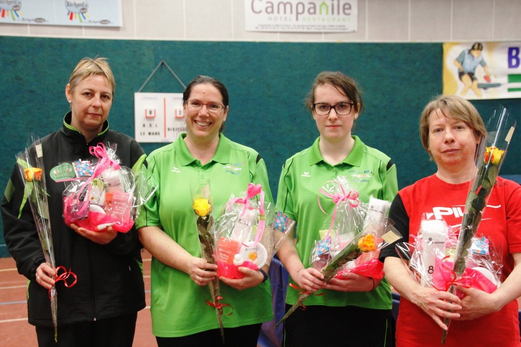 L'équipe féminine jouait La Flèche 1er exequo avec eu , défaite 8-2, Géraldine à remplacée Patricia, blessée ,au pied levé.Fred fait les 2 points , Lucie n'a pas démérité. Elles finissent 2 ème en D1 féminine.